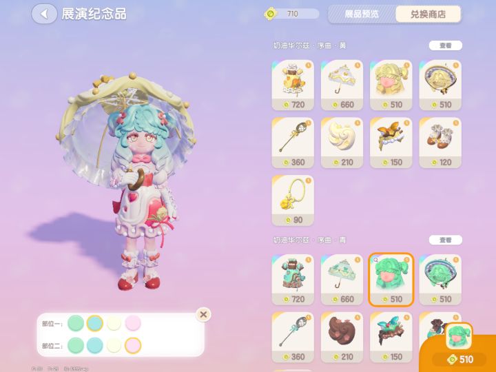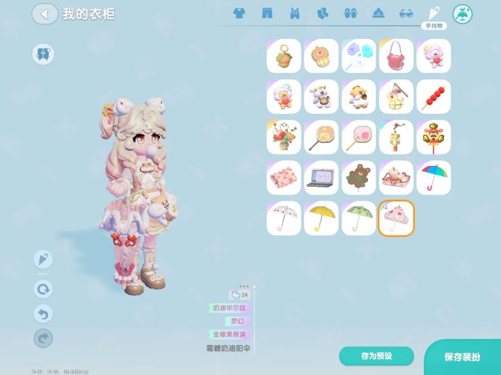 (PS:换黄伞是因为想和奶茶鼠裙子配,换绿发型是因为绿发可染绿染蓝染白染粉,比原色更百搭)