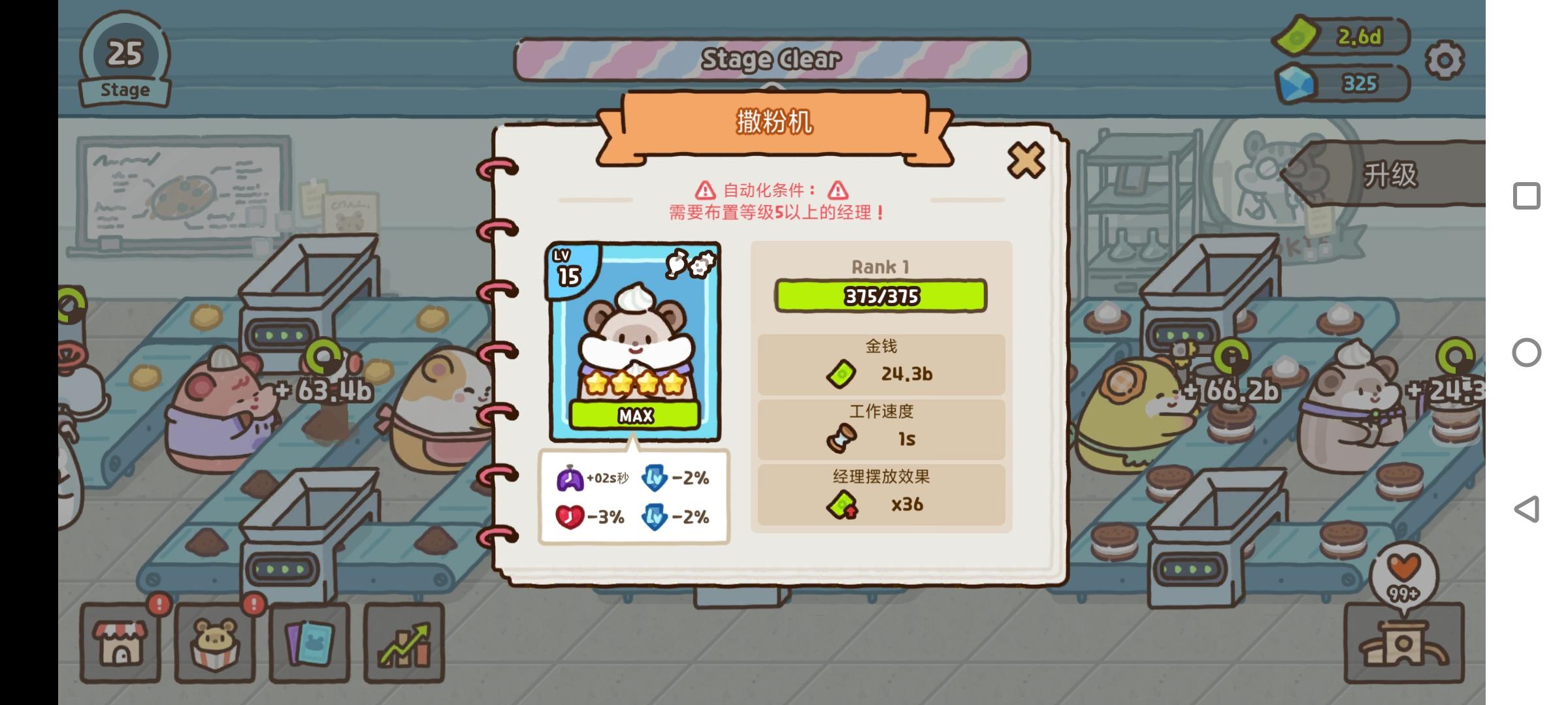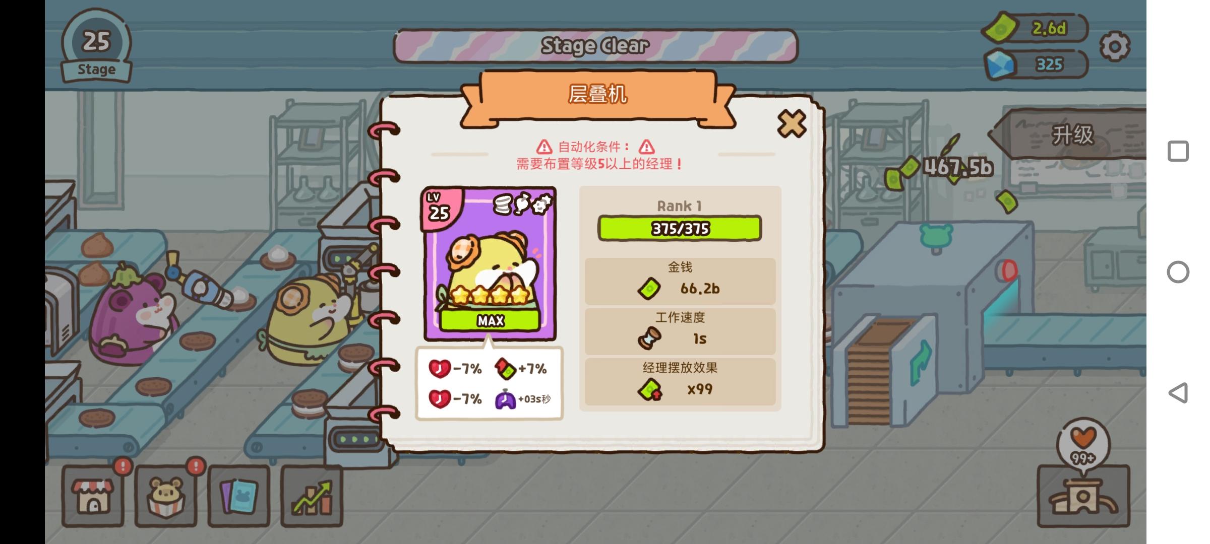 重点,仓鼠在岗时,属性才会生效,在升阶界面,把常用仓鼠刷成心心时长减免,刷几条、刷成哪个数值划算可以自己算,前期可以用小心心买仓鼠卡,给常用仓鼠升阶,开启新的词条位,如图,我是主要仓鼠开了三个词条位并刷成7%减免,和家园里的减免凑满100%之后,直接无限小心心,但满100%也不是直接无限,在家园里每点击一次整个软件页面才会刷新一次,在第四页把三个产出为10的仓鼠轮流点才能收益最大化,手点很累,还会误触,当然是用连点器了。点出六十万小心心,基本上就通关了,仓鼠抽满,花生升满,家具抽满,但彻底刷满后非常无聊。