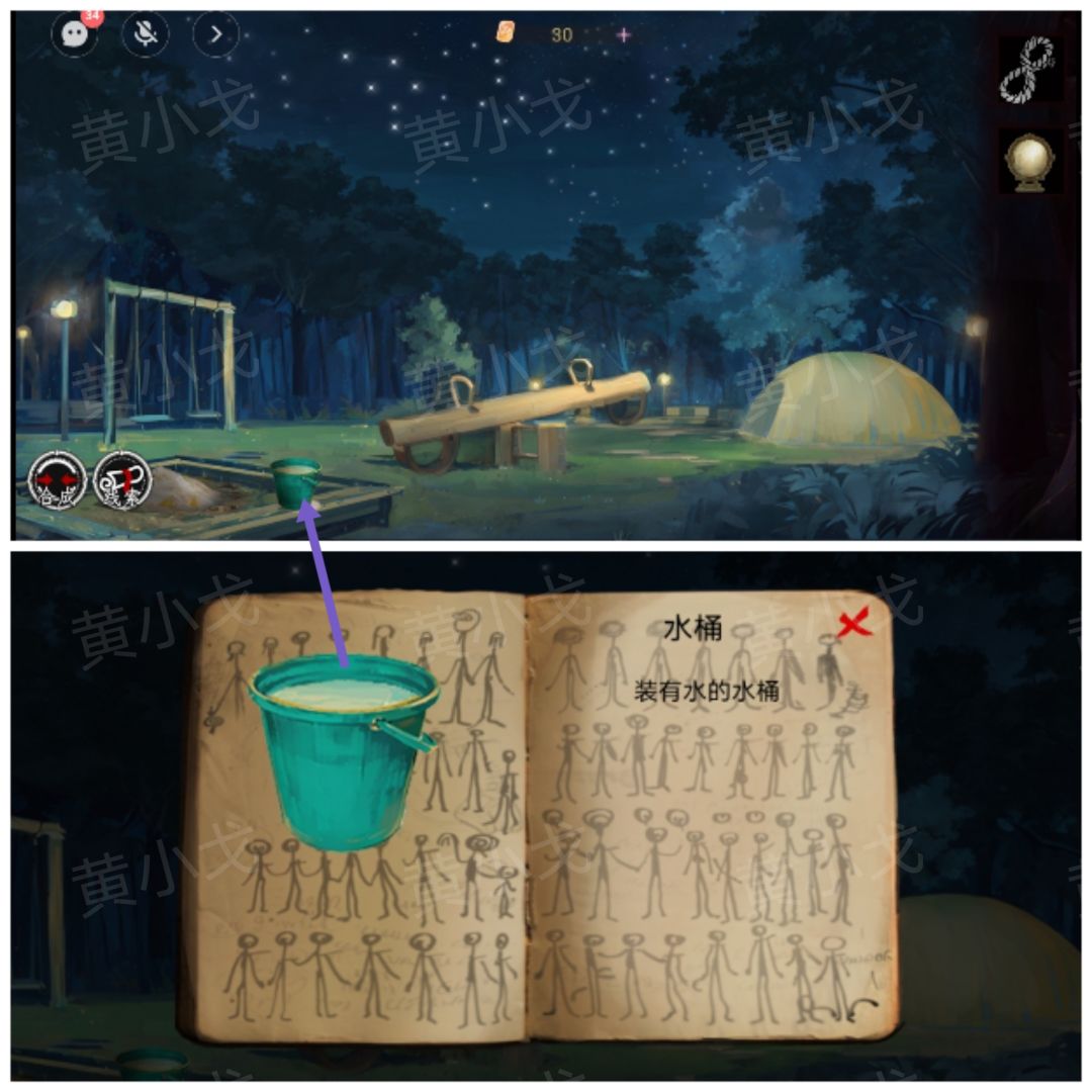 1.拾取沙坑里的【水桶】