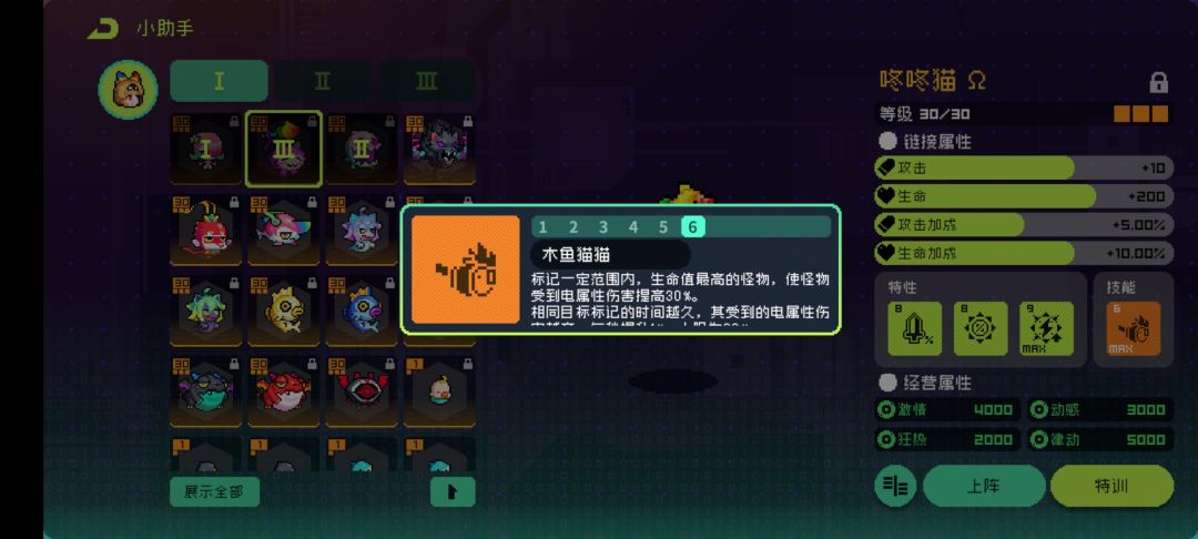 而且弧光千万不能带木匠,木匠冰伤会判定决斗精灵为冰属性,让决斗的电属性加成全部失效,决斗精灵只能增幅一种元素。最后携带的小助手为: