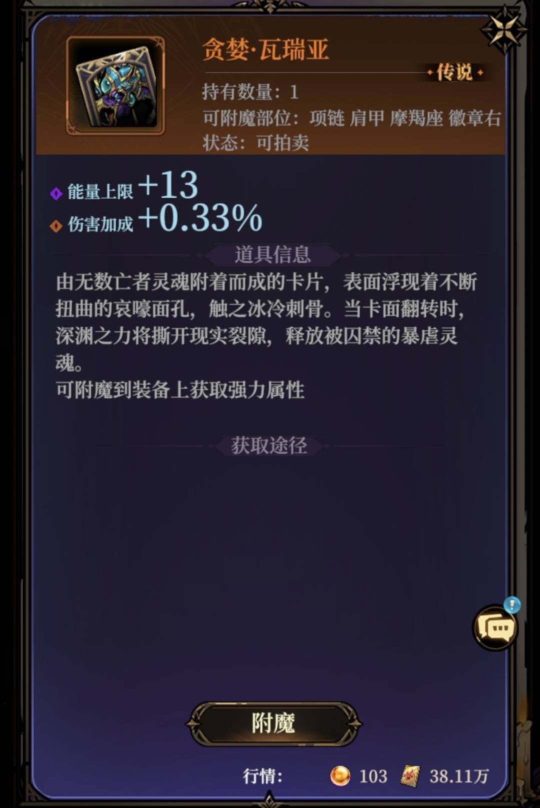 附魔:将蕴含魔力的卡牌附于装备之中,从而赋予装备额外的属性加成和特殊效果,让装备性能得到显著提升,附魔卡牌主要通过【黄道秘宝】活动产出,该活动每周六开启