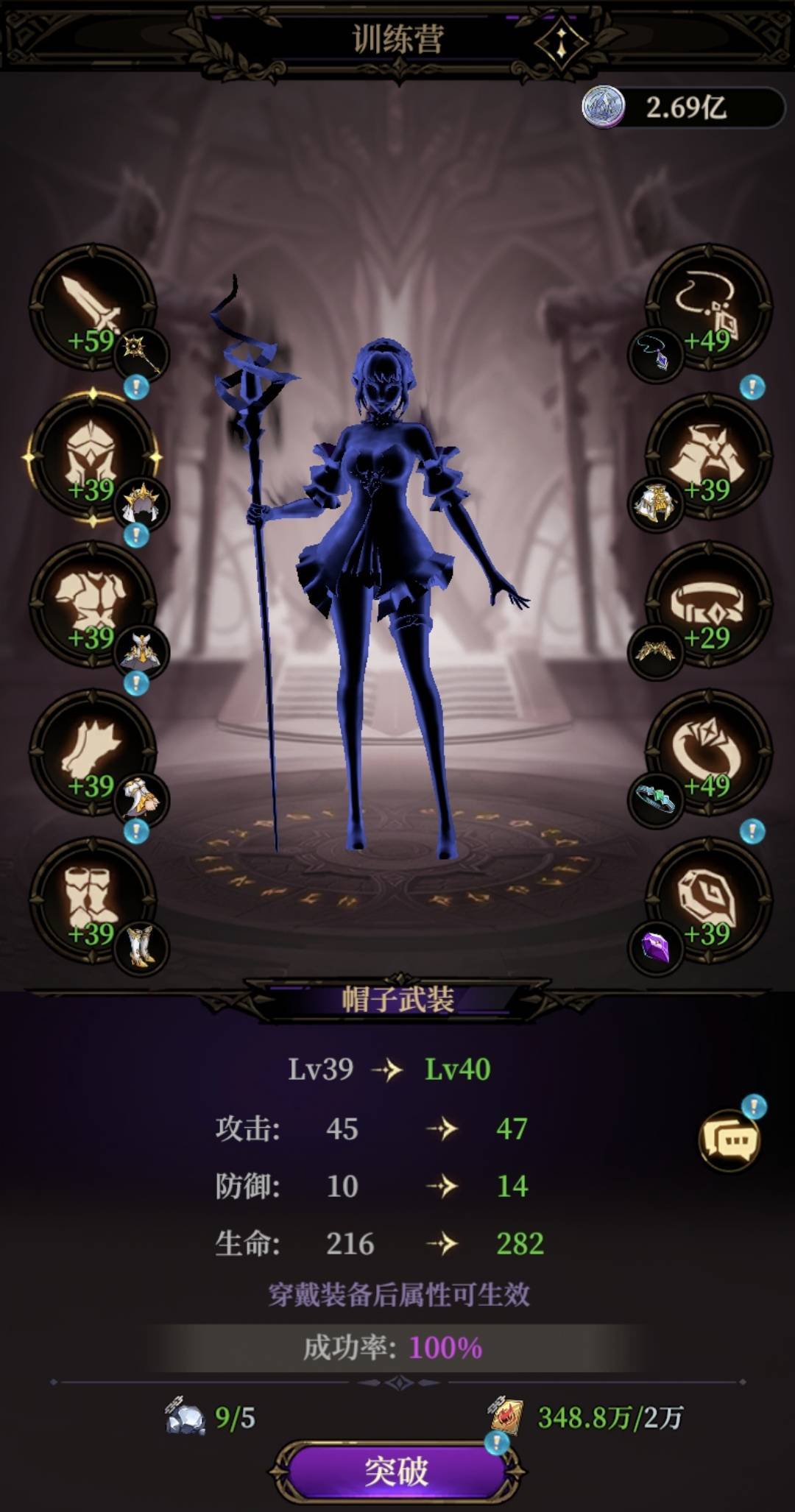 训练营:对穿戴装备的部分进行武装训练,提升角色基础属性,训练需要消耗科尔币和魔锭,训练具有成功率。训练成功则升一级,每升十级则需要进行一次突破。突破需要消耗烛火币、奥哈矿/星铁矿/斑图矿等稀有矿石,这些矿石可以通过拍卖行、熔炉获得