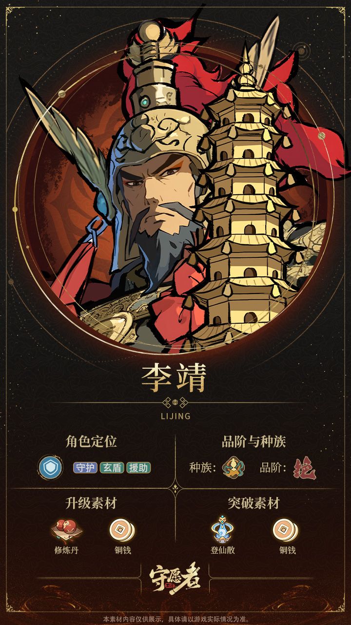 上一期我们介绍超级不羁的三太子哪吒,俗话说:上阵父子兵!今天咱们就来看看三太子亲爹——托塔天王·李靖在《守愿者》中的实力吧!