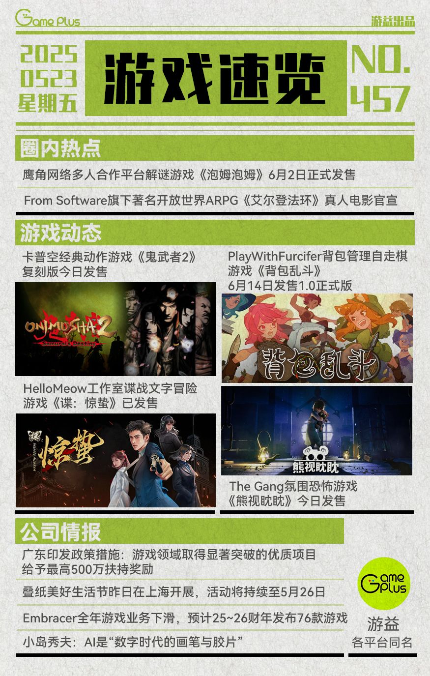 1.鹰角网络多人合作平台解谜游戏《泡姆泡姆》6月2日正式发售