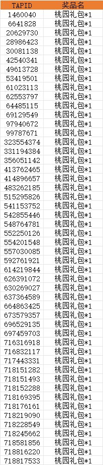 2.50个【桃园礼包】的兑换码将由TapTap平台系统自动开奖,请中奖主公留意站内信消息,及时领取奖励;