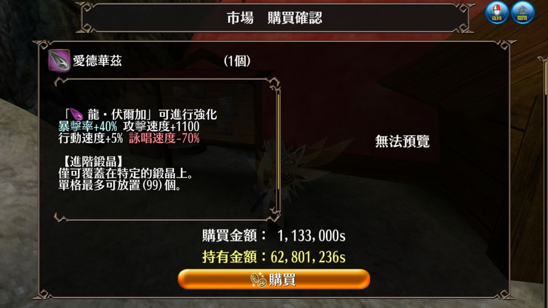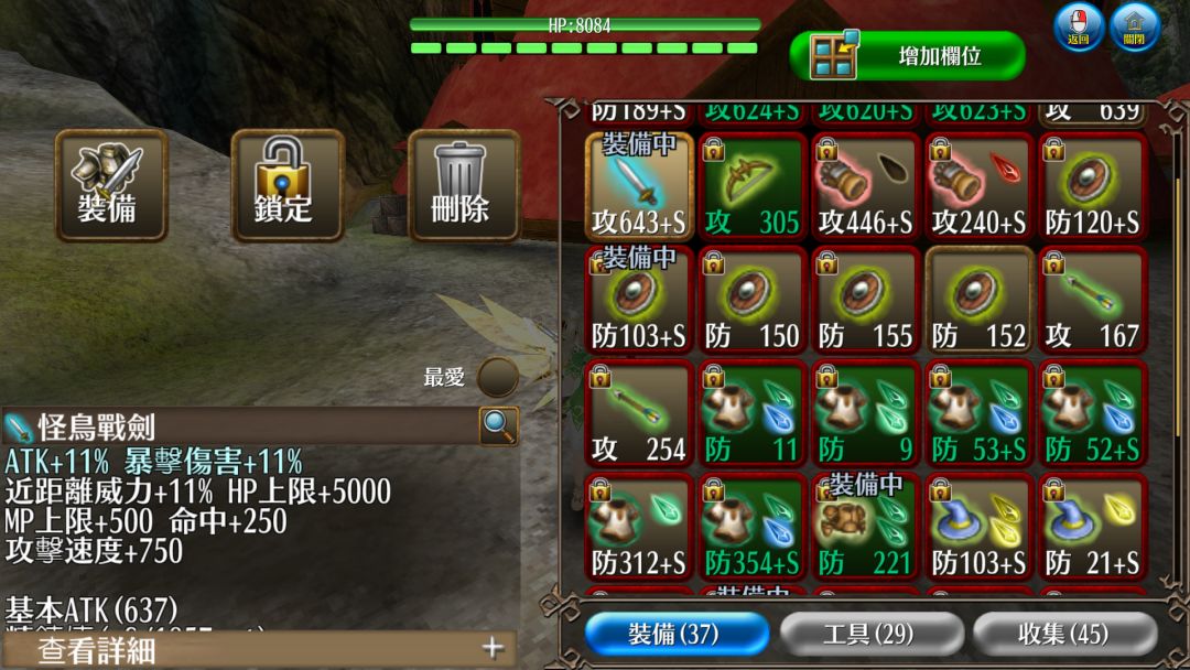这种尽可能压缩成本还要打出相对更高伤害的玩法我感觉确实很好玩武器直接选用这把怪鸟战剑(后面称作鸟剑),因为很难刷所以只有底攻(平均半小时出一把)