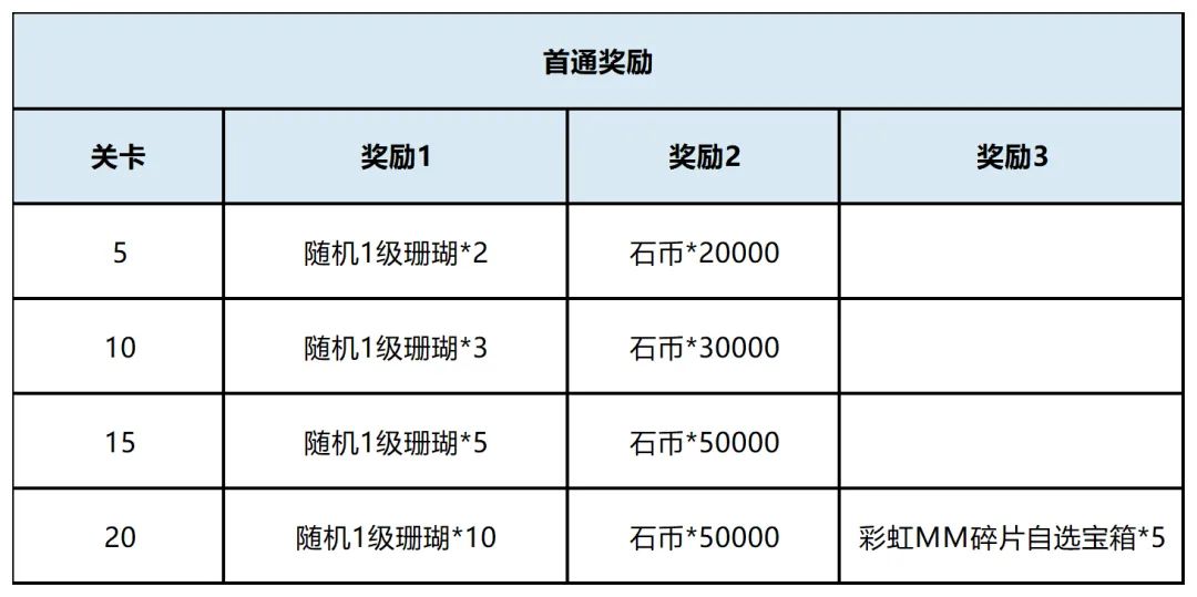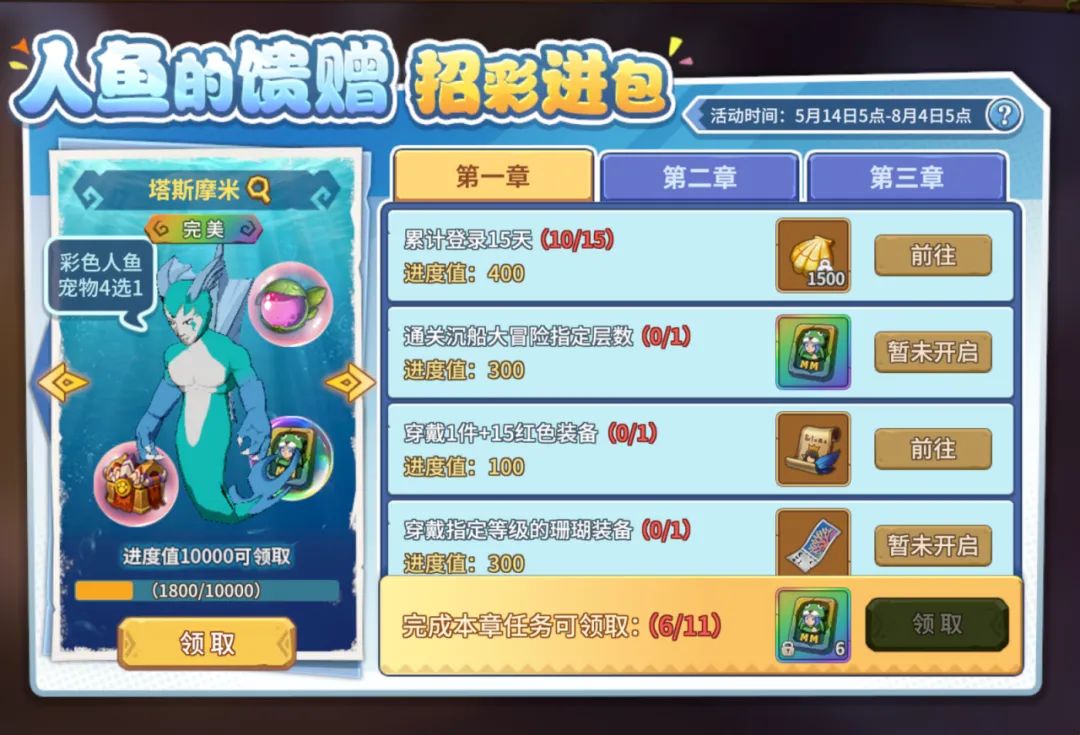 (2)人鱼的馈赠:通关沉船大冒险10/15/20层,分别获得彩虹MM碎片自选宝箱*1/2/3