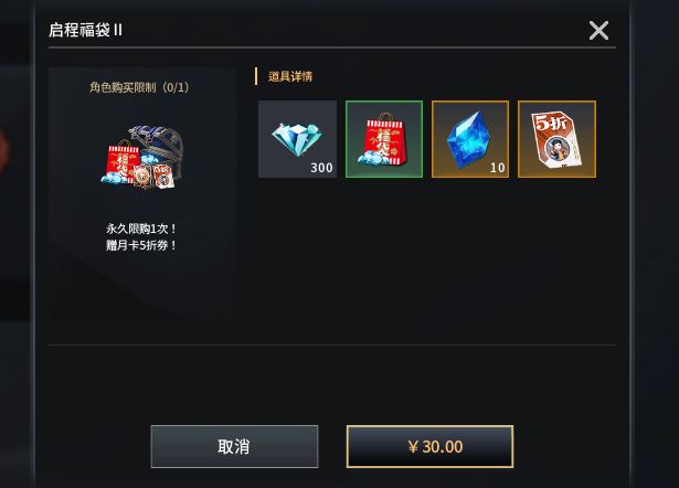 购买之前可以购买商城启程福袋,可以给月卡5折优惠