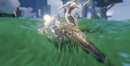 同时战斗动作还细致入微地反馈出战斗打击感,当赞妮使用盾反时,武器与攻击方向碰撞会产生金属碰撞的清脆音效,同时角色身体会因反作用力后仰,武器模型出现细微形变。若成功触发“盾反”,会给到玩家高频震动特效与玻璃碎裂的音效反馈,有种类似《怪物猎人》盾斧超解的体验。