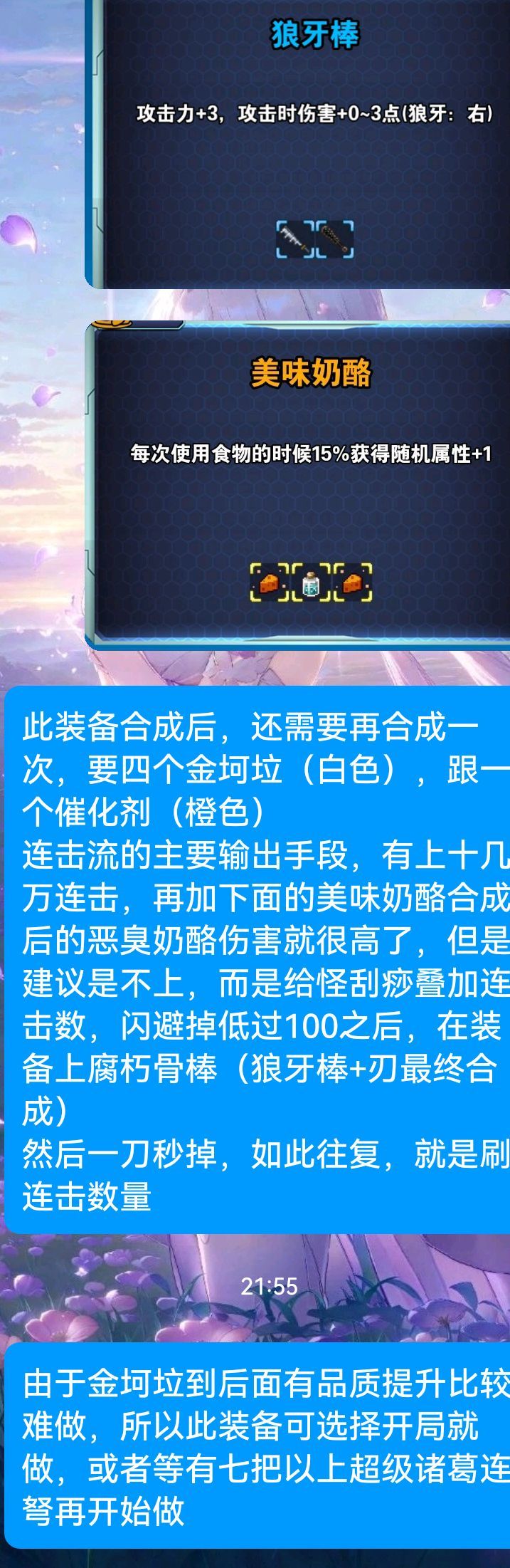 超级诸葛有着七个及以上就换掉强袭,最终要做到12个想快速到万层,直接装备“腐朽骨棒”+“恶臭奶酪”(通常两个骨棒加两个奶酪)