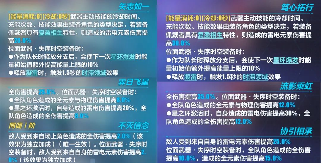 除了对伤害的加成外,专武主要有以下两个关键机制:其一是赫丽娅作为队长释放分支后,会让下一次星环爆发的能量初始值,额外提升能量上限的10%,使得队友少打一个分支能量也够用;其二是赫丽娅释放第三段必杀技【凝雷】时,会触发1.5秒的时滞领域效果。