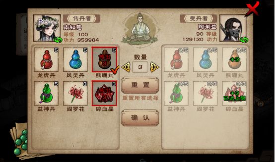 共十种可转移丹药:龙虎丹、风灵丹、熊魄丸、益神丹、阎罗花、碎血晶、淬元金丹、凝天玉膏、冥蛇丹、幽鬼丹。