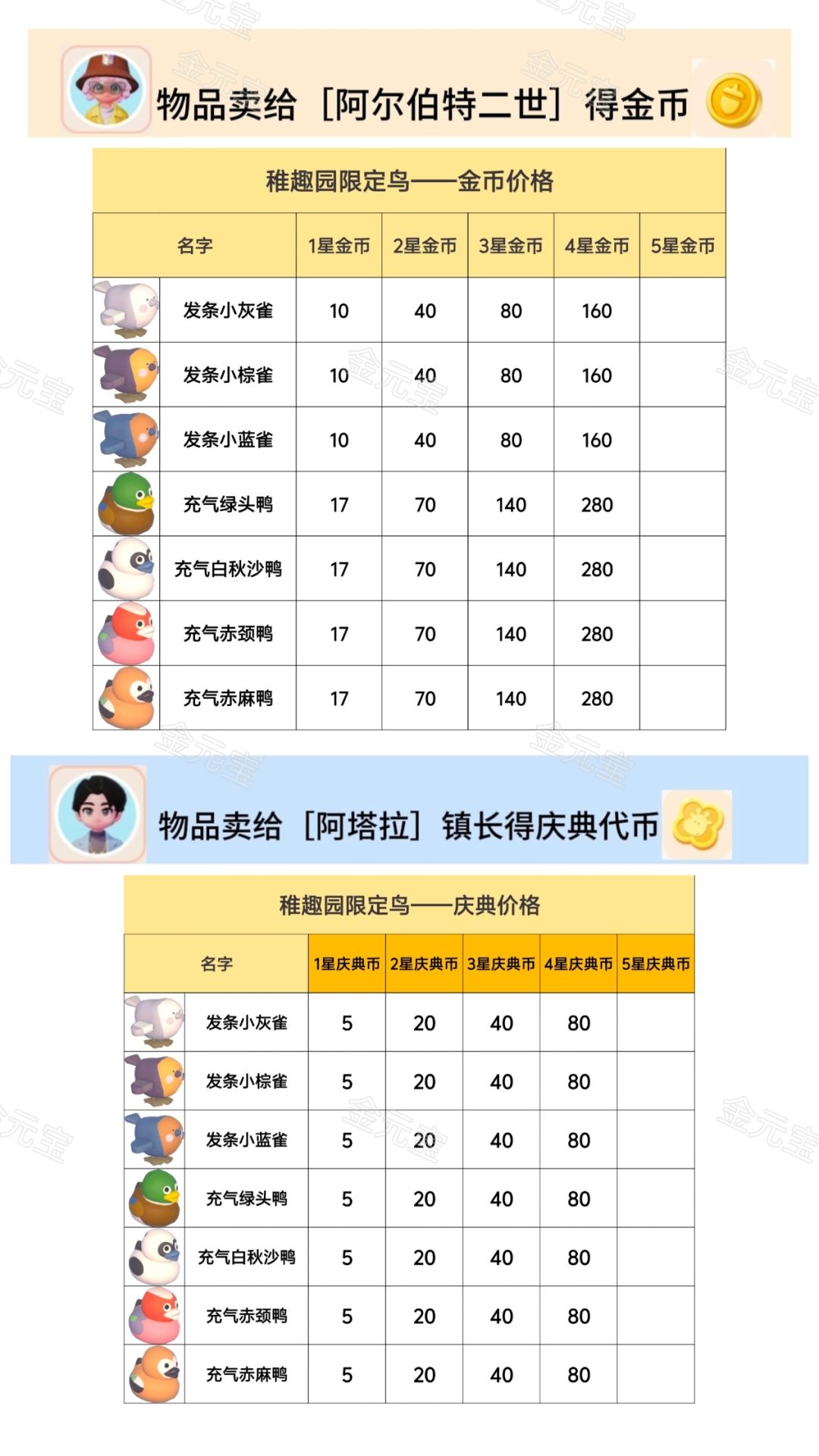 稚趣园鸟点位图金币+庆典价格表