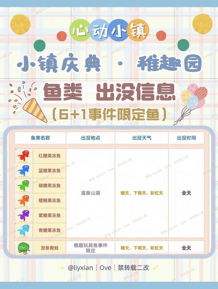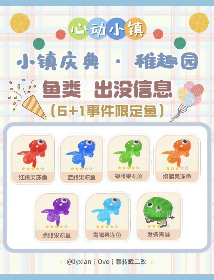 【心动小镇】稚趣园 7种限定鱼类 出没信息