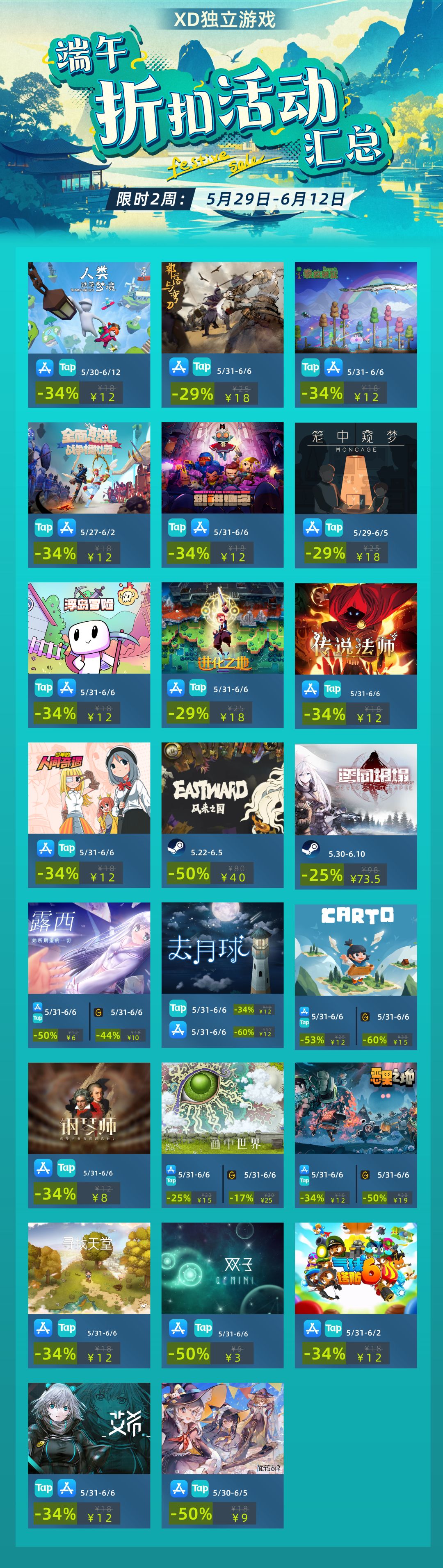 跟大家预告一下,端午特惠将在下周开始!这次折扣的主要时间是5月30日-6月5日,不过会有部分游戏提前、或延后开启折扣,大家可以通过折扣详情了解自己关注的游戏的具体折扣时间和信息!