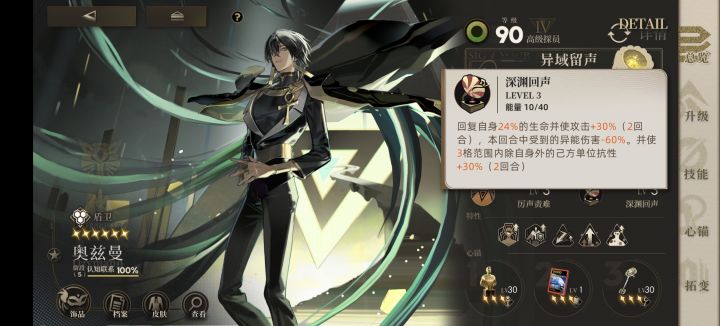 )②奥兹曼 三名盾位里最脆的那个,天赋与技能里面大量防御词条被攻击占模,虽然我们也不知道为什么奥兹曼要叠这么多攻击词条,但他二技能的异能伤害免疫加为队友加抗加自身回血极其恐怖,在牵制异能高伤的boss时近乎神技,唯一需要注意的就是在嘲讽抗伤的时候不要太猛,防御减伤较少的奥兹曼真的会被打死。