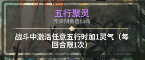 到达元婴后,就可以抛弃灵气牌,依靠非五行卡和仙命的配合来提供足够的灵气。战力足够就可以每轮只D一次副职,为化神做准备。