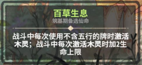 筑基元婴仙命必选,这是琴忘忧的玩法核心,刚经历完共鸣赛季的大家应该对幕虎的木灵炼体共鸣有些印象,依靠狂舞曲的高额加攻和不耗灵木灵牌来进行速杀。这套卡组的玩法思路和它基本一致又比它更强。被动和筑基的激活让我们完全不担心木灵和火灵牌的使用,同时到达元婴选择五行聚灵仙命后,每次使用琴师卡就会配合筑基和元婴仙命获得1灵,不需要灵气牌就足够运转整个卡组。