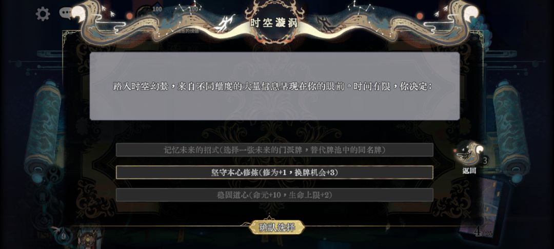 有修选修因为前期基本上不锻体上到金丹拿到专属仙命才开始锻体,没有就选压缩牌库的,再者就是换牌次数了第二轮选完丹副职拿到直接上就行练气丹卡牌质量还是挺高的,能过渡到筑基。