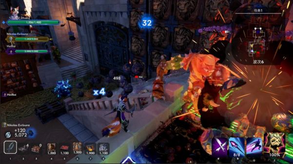 在这个基础上,肉鸽这一游戏玩法,也让每局游戏的时间被大幅拉长。在挑战最后一个BOSS时,我们在一场对局里通关了共计六个任务,花费了近三个小时的时间。越是挑战到后面的关卡,失败带来的沉没成本也就越高。在靠后的任务里,怪物的数值叠到十分夸张的地步,精英怪的血量轻松破万,就连最普通的杂兵往往也有上千血量——我根本无法想象,如果不采用目前所研究出的最功利打法,使用最“轮椅”的陷阱搭配,我和联机的同事们该如何通关。此时,陷阱的输出已经捉襟见肘,我们必须时刻保持紧绷,游走于不同阵线间处理那些可以突破阵线的精英怪,同时还要提防可以越过障碍的飞行敌人“偷家”。