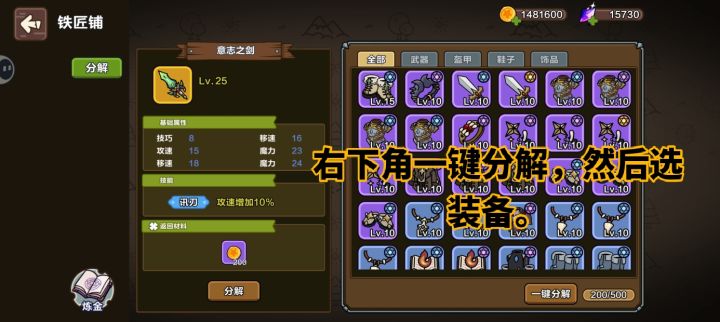 很多小朋友不知道怎么分解装备?