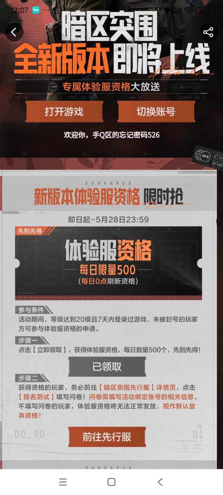 暗区突围体验服 资格获取