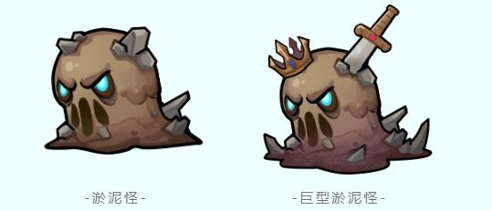 - 淤泥怪(肉盾怪)特点是首次死亡后化作淤泥,开始原地持续恢复一定生命力,需要英雄在此期间持续输出伤害。同时淤泥状态时,会为其他怪物创造前进窗口。巨型淤泥怪血量更高,难以被击退。