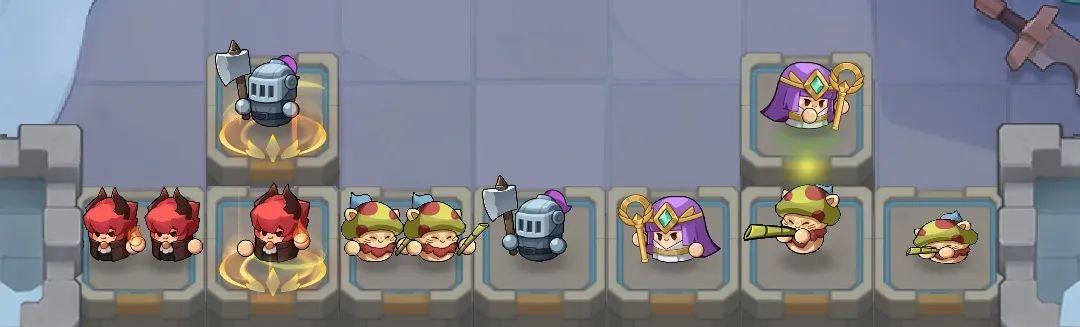 在阵容上推荐「蘑菇头」、「火焰法师」、「骑士」、「雅典娜」。