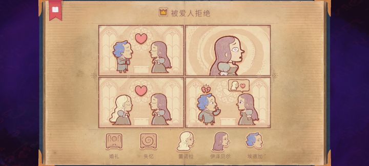 1个成就:满足大标+要求2个成就:满足大标+任一,分别完成2.2 惊愕2.3 不幸3.1 启示3.2 破镜重圆3.4 年老色衰4.2 两瓶毒药4.4 忌妒5.4 幻觉6.4 指纹利用公爵只摸枪、管家只杀人。7.2 拯救复仇:把男爵绑架了8.4 报案9.1 谋逆9.4 厄运救完结不成婚,王后心系王座。9.5 女王要点:让骑士坐王位。10.4 忏悔11.5 图