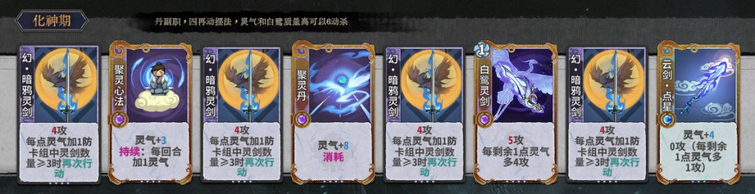 琴师少或没有琴师时玩,开局未来牌选择暗鸦灵剑,副职选符咒师/保下限可以选炼丹师,仙命全修为,7轮上元婴开d,觉得战力不会输了再停手,再动优先级暗鸦最高,核心输出卡是白鹭,最终阵容参考传统符剑。