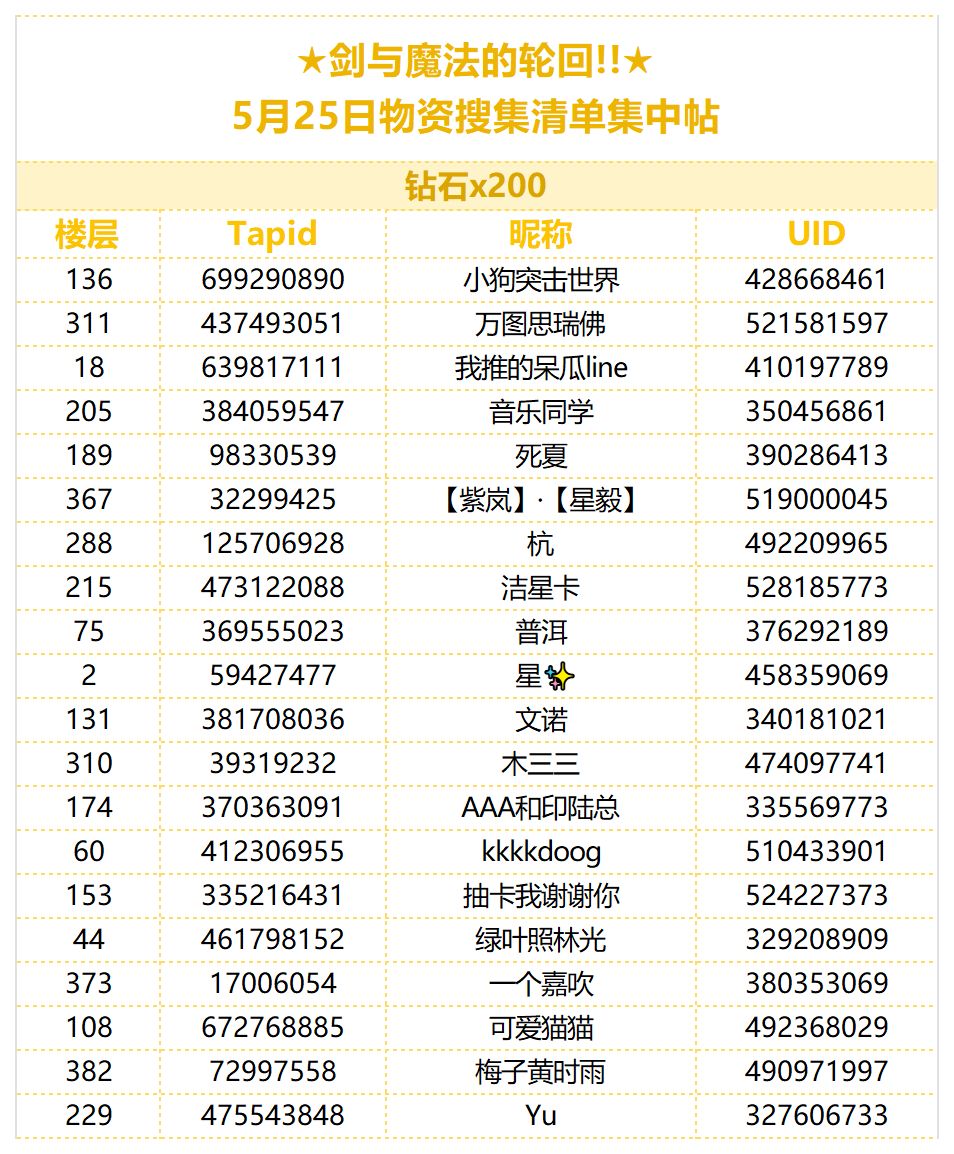 (已开奖)★剑与魔法的轮回!!★5月25日搜集清单集中帖