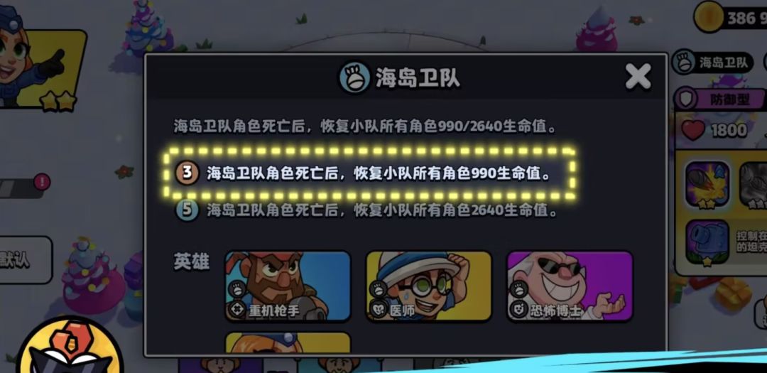 海岛卫队第一层的效果是,当羁绊角色死亡后,恢复小队内所有角色990点生命值,当凑齐第二层效果后,治疗量将提升至2640点。