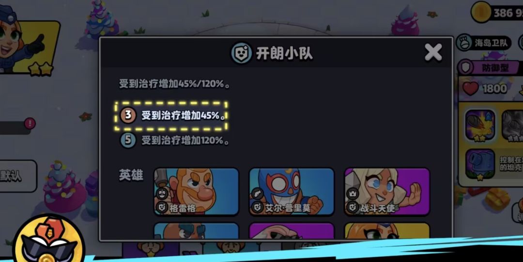 开朗小队第一层的效果使受到治疗量增加45%,第二层提升120%。