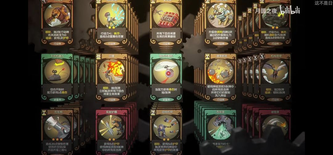 从预告片上看,机械师定位是以行动牌和攻击牌为主的输出手段、以护甲作为苟活基础的物理职业。有升级和移除的老机制和耗尽,组装和下回合的新机制。
