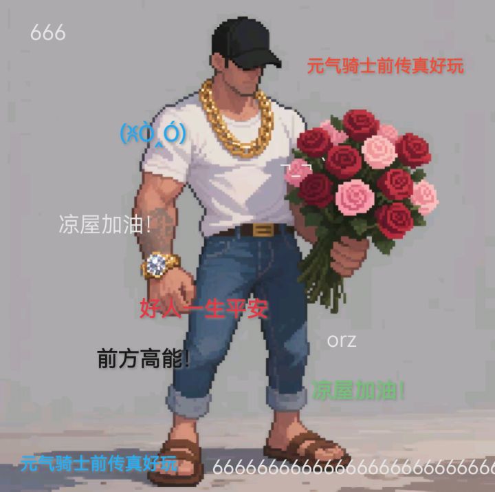 传奇效果:同时穿戴 热心网友的鸭舌帽 机智网友的T恤衫 沙雕网友的沙滩鞋 杠精网友的金项链 时生效,触发弹幕时有概率释放全屏弹幕护体。