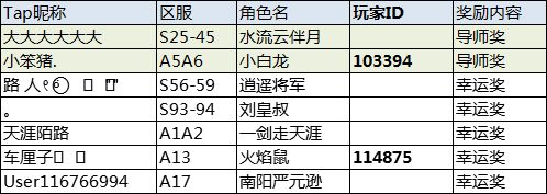 幸运奖(5-10名):200元宝+仙草*10+中魂玉包*2+铜钱*30万
