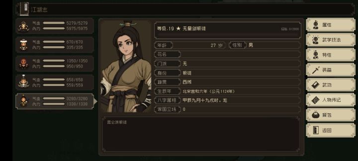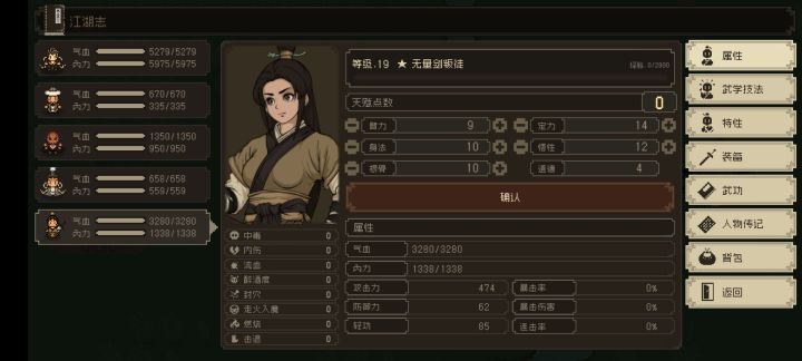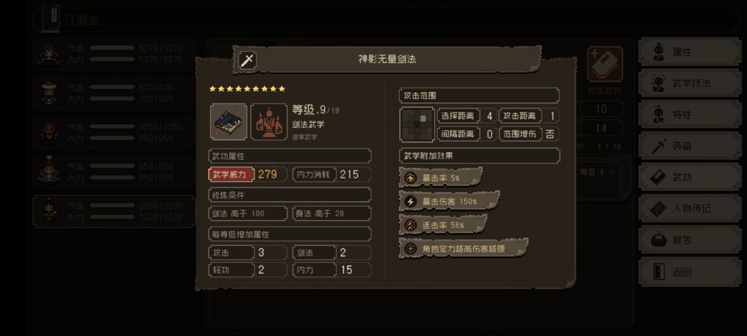 悟性始终高于5,无特性,自带九星武学,神影无量剑法。