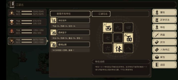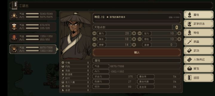 悟性始终高于5,自带特性三个,武功是海砂刀法(三星)