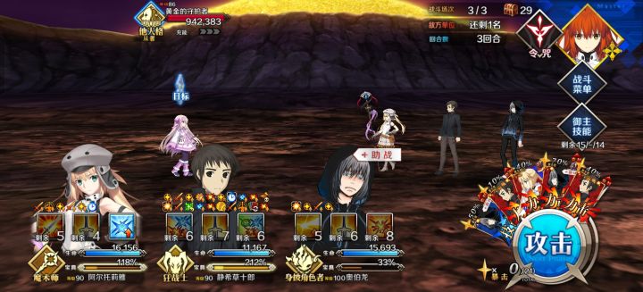 因为难得好友大佬中没有一个很适合打这个本的好手,就用喂了两个杯的草十郎平替了。第一次周回的时候c自己出拐借助战,然后发现先开决战服技能后开奥伯龙3技能和先开奥伯龙3技能再开决战服技能伤害能差20万。