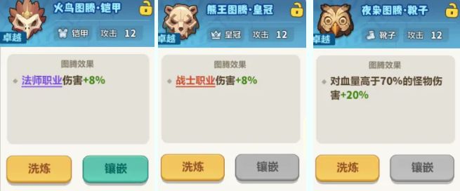 优先携带增加法师伤害,战士伤害+城墙满血伤害,以及对血量高于70%的怪物伤害之类的图腾,有条件可带城墙免疫五次伤害。