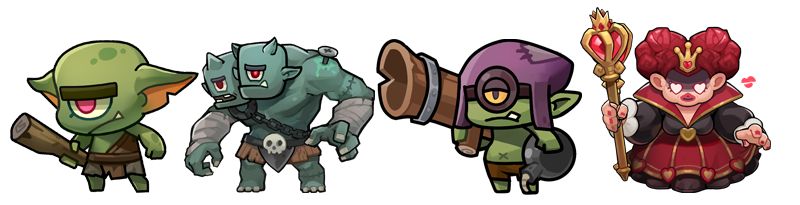 ①哥布林为普通小怪,擅长攻打城墙。成群出现,数量极多,考验国王的AOE输出能力。