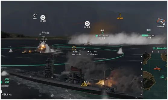 第二种鱼雷是Type93 mod. 3鱼雷,这款鱼雷有着23767的最高标伤,射程也有12KM,倾向于中距离作战,67节航速比较快,只要敌人进入鱼雷范围就很难躲开。由于鱼雷射程缩短,实战中要小心对手巡洋舰的雷达,最好还是跟随队友,协助队友清掉前线巡洋舰后,对面的战列舰基本就是随便乱杀。
