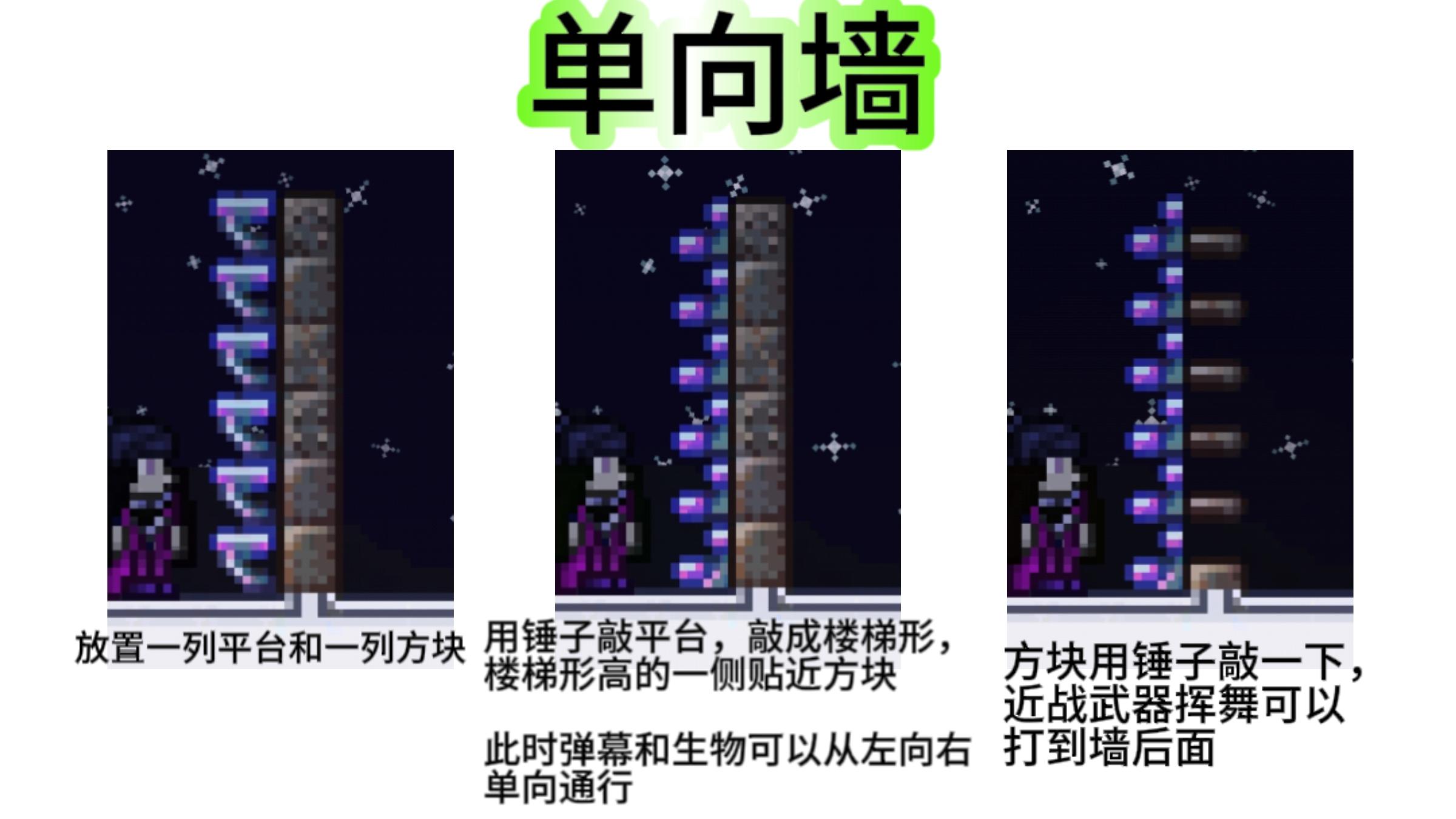 单向墙是一种生存实用结构,可以实现单向通行,穿墙,单向攻击等功能。