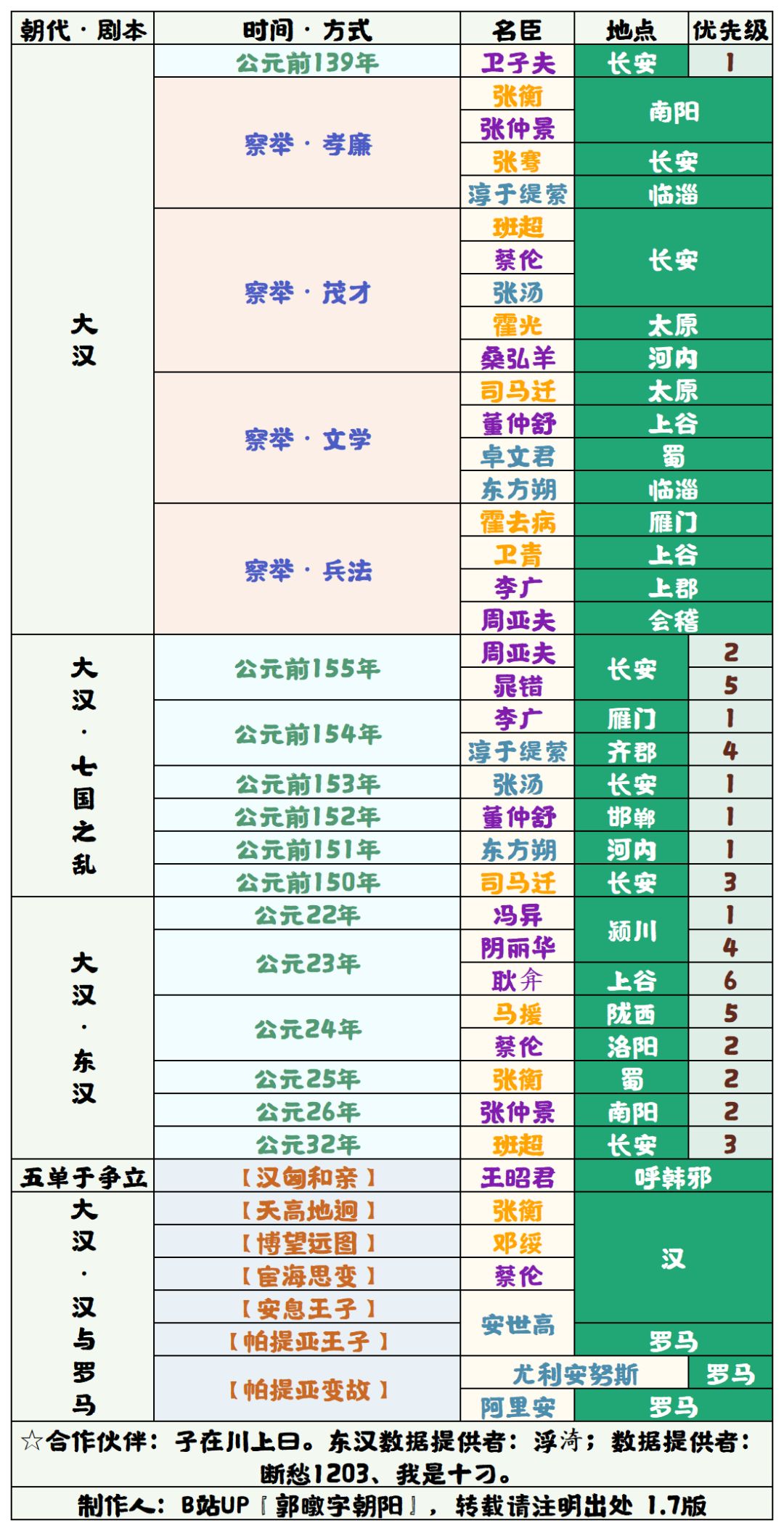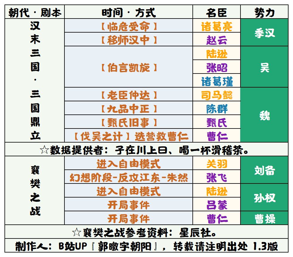【无悔华夏】全剧本名臣招募表 4.0