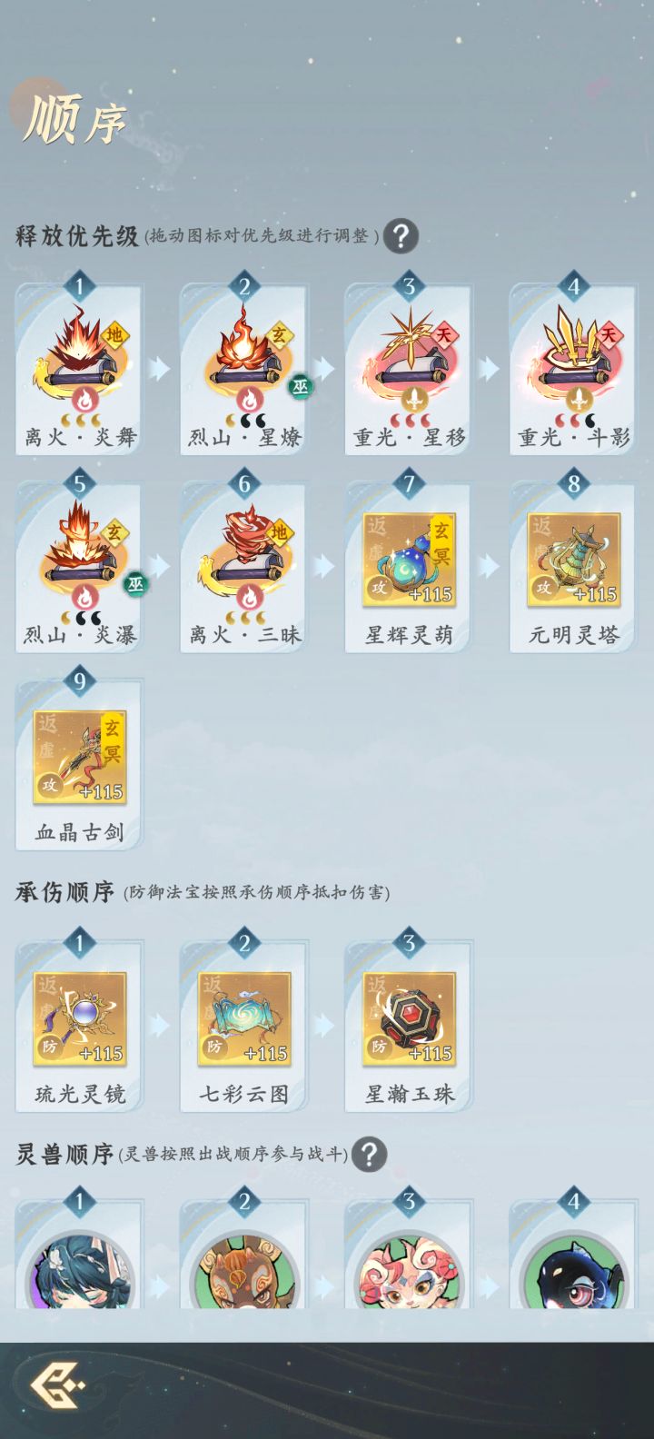 返虚后期开巫山可以用2烈山,星燎2号位后面的神通+法相就可以一直吃15%伤害加深,有时候可以叠2层就是30%,没有炽炎焰羽就这样带也不差,1号位不一定要炎舞,也可以用业火,0氪从人界开始搞4火2剑,到返虚中期11重,可以星移天3,斗影天1,可以越3-4亿左右,但是要打1分40多秒,太久了