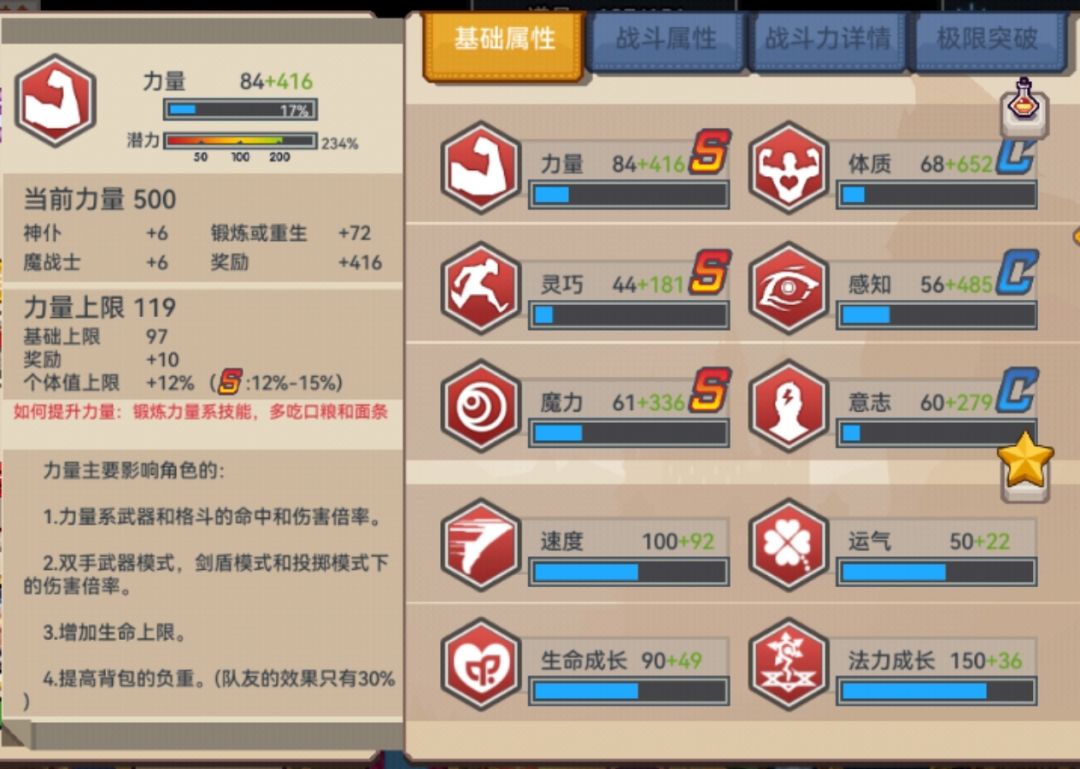 潜力的高低决定了获得相应经验的数量,高潜力一般指380%以上