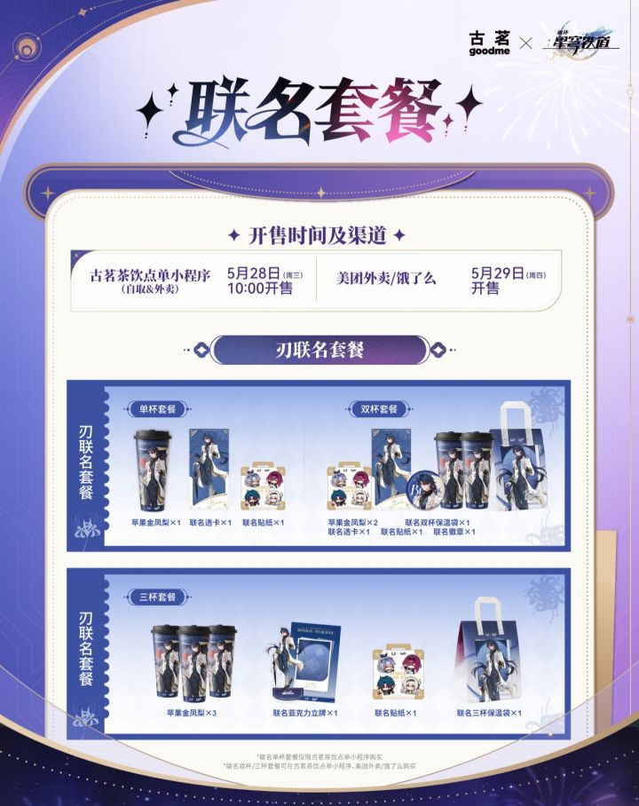 古茗与《崩坏:星穹铁道》的联名套餐补货有新消息啦!5月28日(周三)10:00,大家就可以在古茗茶饮点单小程序购买到联名套餐,无论是自取还是叫外卖都可以哦。5月29日(周四),美团和饿了么平台也会开售。