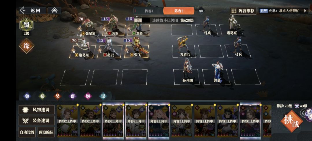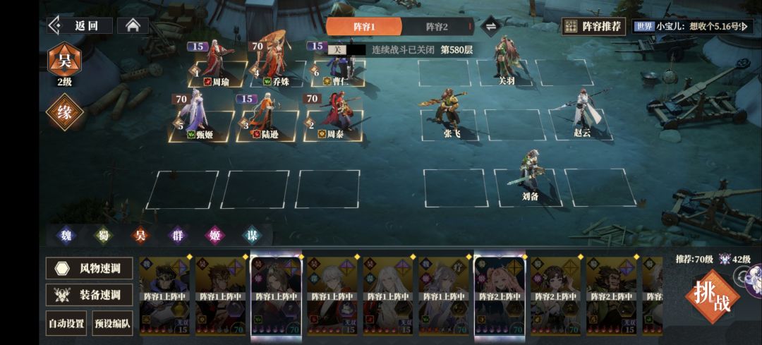 580层蜀国四傻,关键点在于打循环的时候给攻击最高的挂岳峙回云的被动。