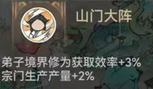 山门大阵是山海活动开放后,宗门有了自己的护宗大阵伴随产生的加成类buff,同样有着宗门生产产量 +2%的生产提升,目前宗门大阵每提升30级该buff效果提升1级。