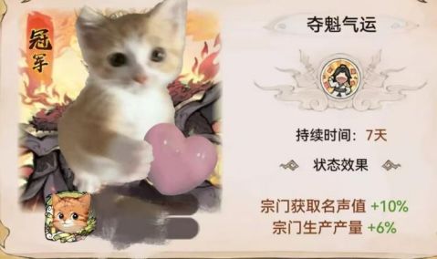 由宗门稳定度(宗门弟子的平均忠诚度)决定,当宗门稳定度高于95时触发,使宗门获取名声值+5%,宗门生产产量 +10%,弟子境界修炼效率 +8%,是宗门产量提升buff主要来源之一,因此在搜刮宗门弟子储物袋要适度,维持宗门的稳定才是繁荣的根本。